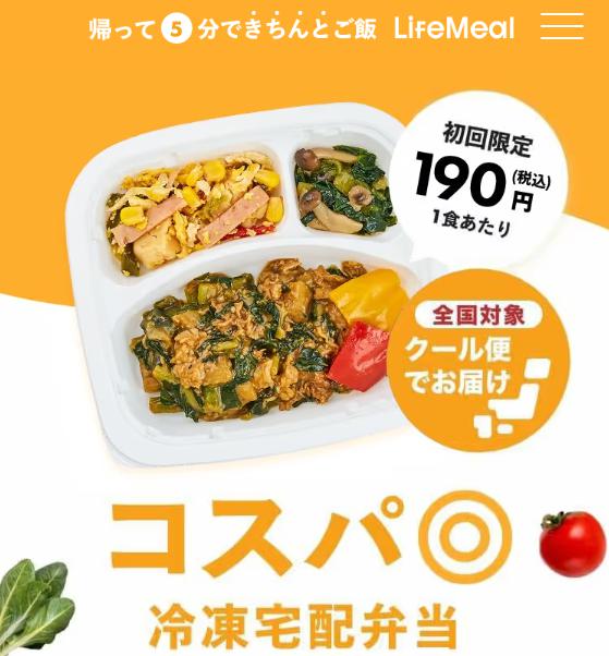 一般的な冷凍宅配弁当の相場が500〜800円であるのに対し、ライフミールは初回限定で1食190円(10食セットの場合)という驚きの価格設定。