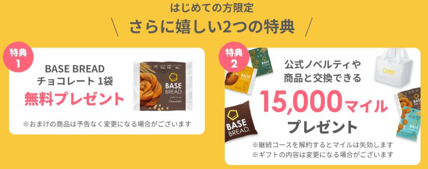 ※定期もっとお得便(初回23%OFF)に特別割引1,026円を適用した価格を、14袋で割った場合。2回目以降、BASE BREADチョコレートの場合13%OFFで221円。